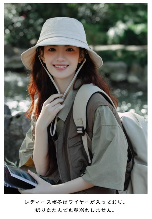 | レディース帽子は紫外線を360度に防止して、さらり日差しの照り返しによる眩しさ防止にもなります、UV効果の強い日差し季節には最適です。 日除け帽子の表面には撥水加工を実施されており、水は生地表面から転がり落ちます。霧・急な雨を心配することはありません。 手軽に小顔実現・ワイヤー入り!UVカット帽子の8cmほどのつばで、視界を遮るほど大きくならず、紫外線も防いでくれて、お顔を包み込み、お顔を視覚的に縮小させます。 レディース帽子はワイヤーが入っており、折りたたんでも型崩れしません。 日除け帽子は取り外し不可のあご紐もついて、風の強い日でも帽子が飛ばされる心配がありません。 サイズ調整・幅広い用途に対応!帽子の外側に、サイズ微調整用のアジャスターがついているため、動いていてもずれることなく頭にピッタリと合わせることができます。 | |