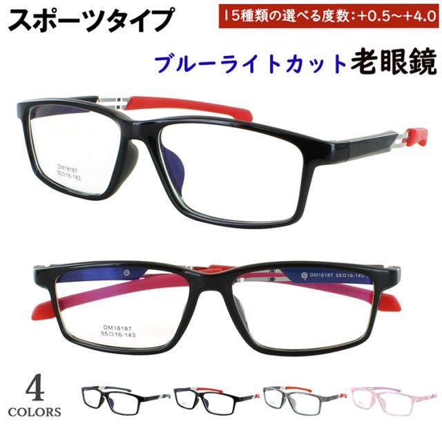 老眼鏡 メンズ レディース ブルーライトカット 0.5から 0.25刻みで選べる リーディンググラス おしゃれ スポーティー 軽量 超弾性素材 TR90フレーム dm18087 4カラー uvカット シニアグラス スマホ老眼鏡 パソコン老眼鏡
