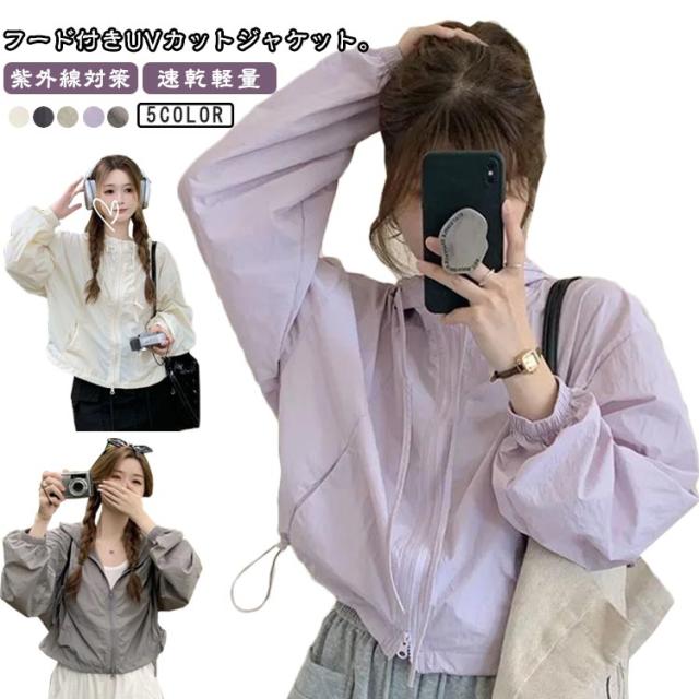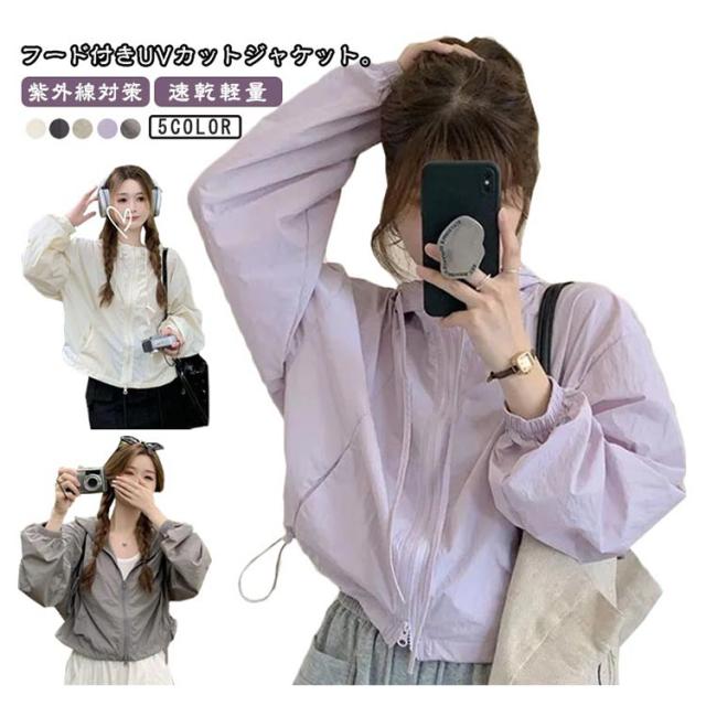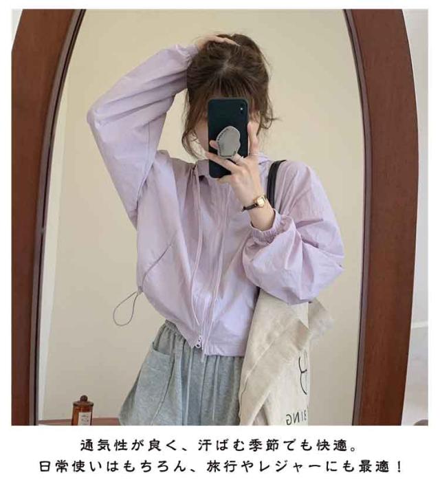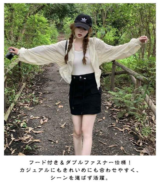薄手 ライトアウター 夏 レディース 春 UV ショート丈 サマージャケット ラッシュガード 紫外線対策 ブルゾン 羽織り 防風 パーカー フード付き ダブルジッパー UVカットパーカー 涼しい アウトドア 速乾 軽量 マウンテンパーカー かわいい