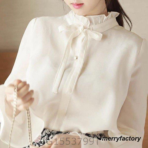 リボン ブラウス レディース 襟 フリル 長袖 おしゃれ 白 ピンク 可愛い かわいい リボンタイ シャツ 秋 冬 春 立ち襟 スタンドカラー 春服 演奏会 フォーマル