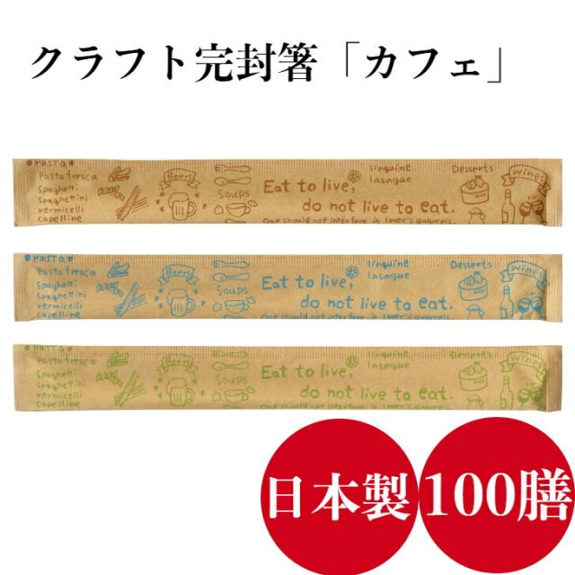 九州紙工 クラフト紙完封箸「カフェ」ブラウン ブルー グリーン 割り箸 100膳 アスペン元禄 楊枝入 カフェ おしゃれ 飲食店 テイクアウト