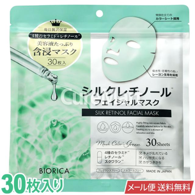 ビオリカ シルクレチノール フェイシャルマスク 30枚入 レーヨン生地 グリーン 日本製 BIORICA メール便送料無料 大容量 カラーマスク 含侵マスク オールインワン カラーシートマスク フェイスパック なめらか肌 セラミド レチノール ドウシシャ 30P