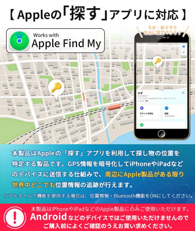 ※周辺にApple製品の無い山奥などの場所では位置情報が正しく取得できない可能性がございます。