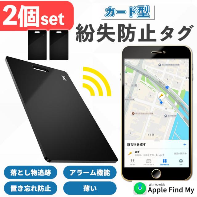 紛失防止 スマートタグ カード 2個セット GPS 追跡 鍵 キー カギ 財布 タグ エアタグ iPhone iPad 探す 忘れ物 キーファインダー 探し物 電池交換不要 迷子 子供 子ども ペット 高齢者 小型 位置 位置情報 airtag バッグ 鞄 ランドセル 老人 コンパクト 小さい 認知症 紛失