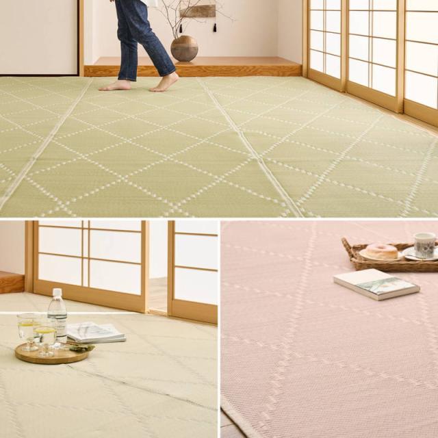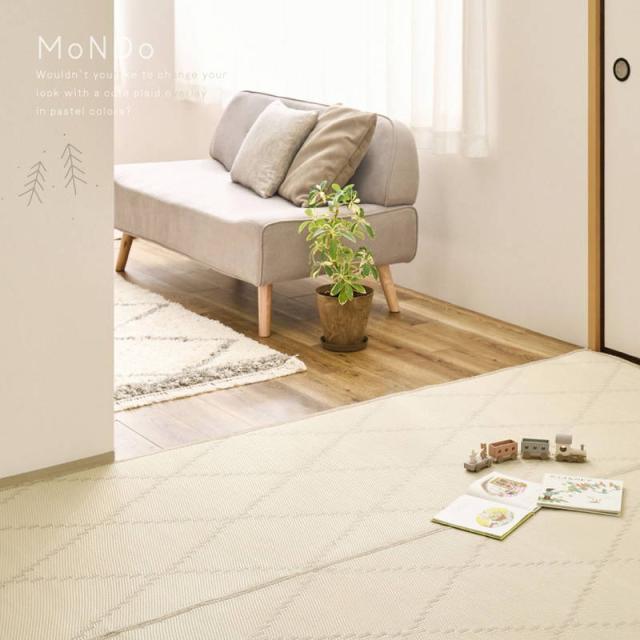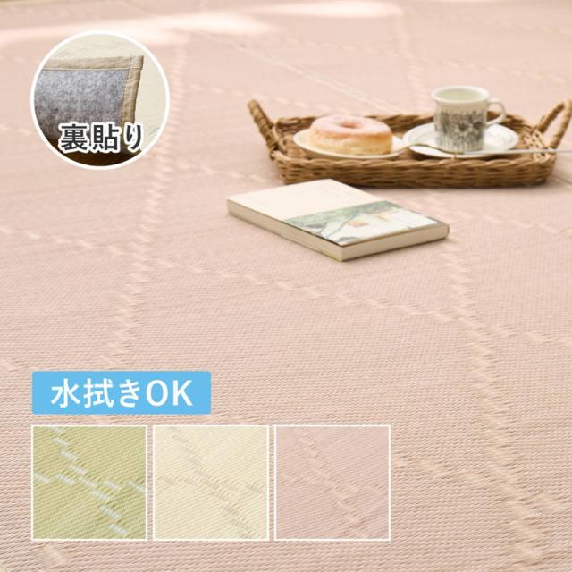 ラグ カーペット 水拭きできる い草風カーペット 裏貼り付き モンド 江戸間4.5畳 261x261cm パステルカラー ござ 敷物 上敷き
