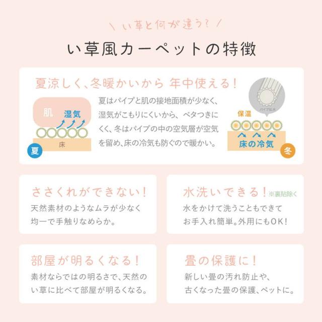 ●裏地付き!パステルカラーのい草風カーペット