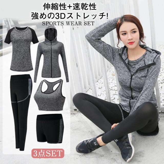 スポーツウェア レディース トレーニングウェアセット 上下3点セット セット ヨガウェア 上下セット ランニングウェア ウォーキン