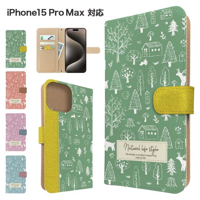 iPhone15 Pro Max ケース 手帳型 スマホケース カバー 北欧 アニマル スマホカバー 携帯カバー アイフォン15プロマックス ケース フォレスト