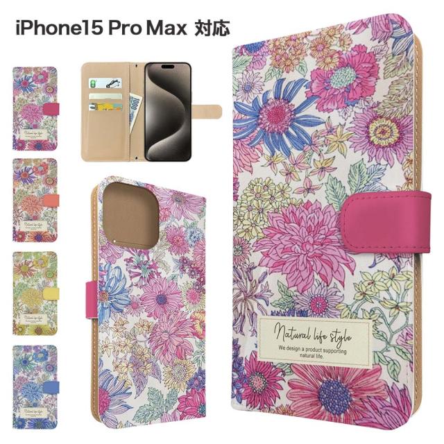 iPhone15 Pro Max ケース 手帳型 スマホケース カバー 花柄 フラワー スマホカバー 携帯カバー アイフォン15プロマックス ケース