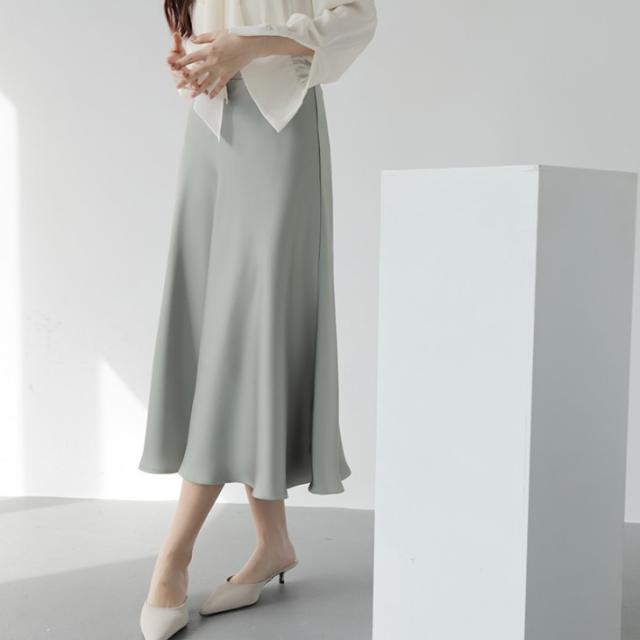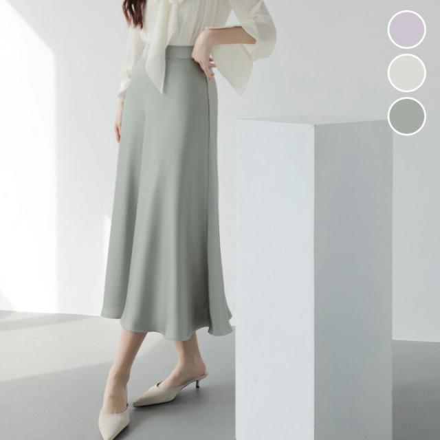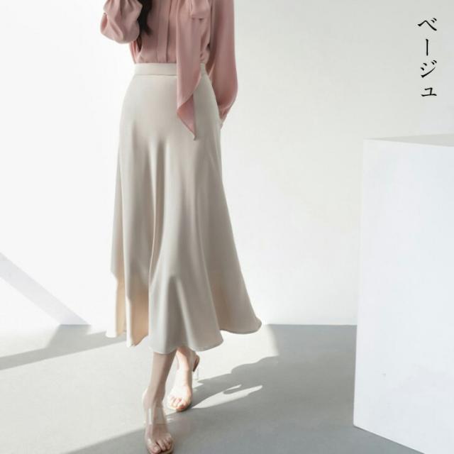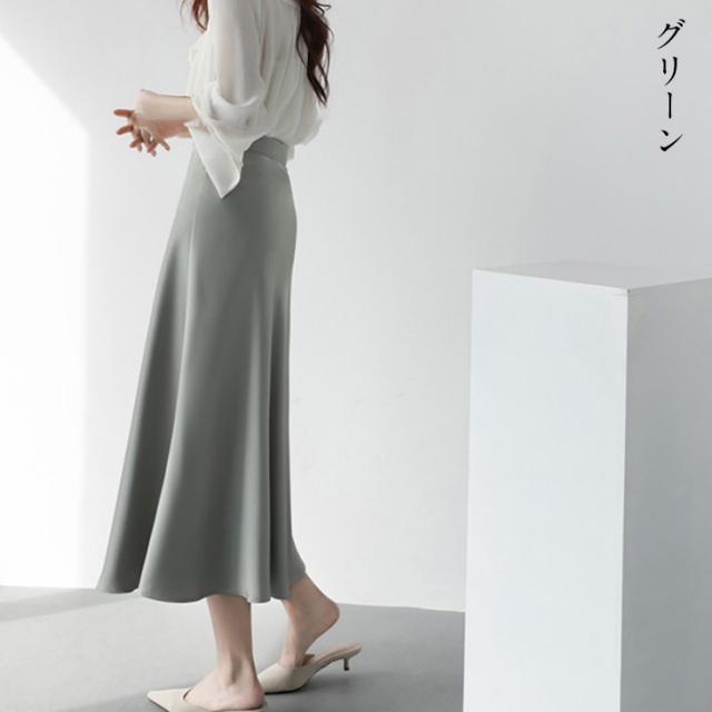 フィッシュテール マーメイド スカート ミディアム丈 サテン シンプル Aライン きれいめレディースファッション ボトムス スカート