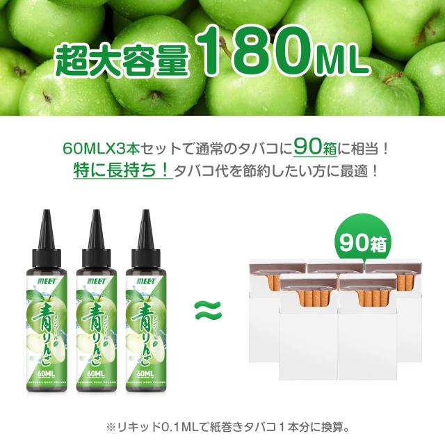 電子タバコ リキッド 青りんご メンソール 180ml 大容量 vapeリキッド ニードルボルト付き ニコチンなし タールなし ベイプ 爆煙 E-Liquid MEET