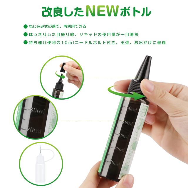 ★新たなリキッドボトルには見易い便利な目盛付きが刻まれている、リキッドの使用量が一目瞭然!