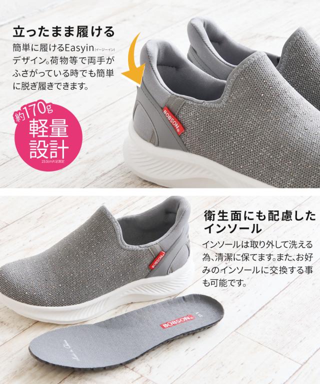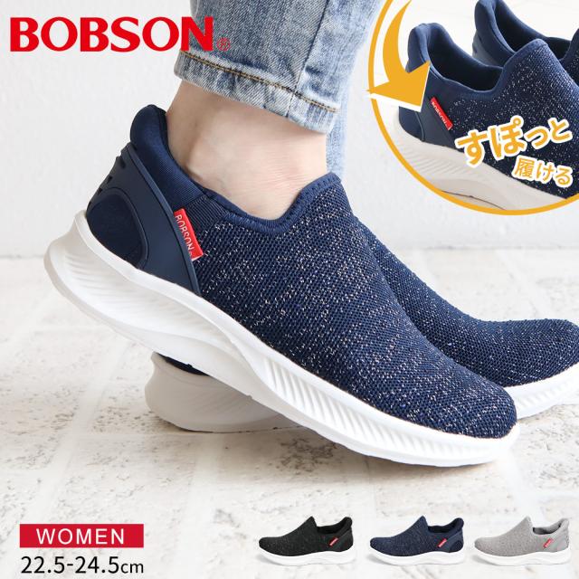 ボブソン スニーカー レディース きれいめ ブランド 通勤 黒 歩きやすい ハンズフリー 靴 軽量 ローカット ウォーキングシューズ 履きやすい メッシュ スリッポン シンプル カジュアル ブラック ネイビー グレー BOBSON Easy in