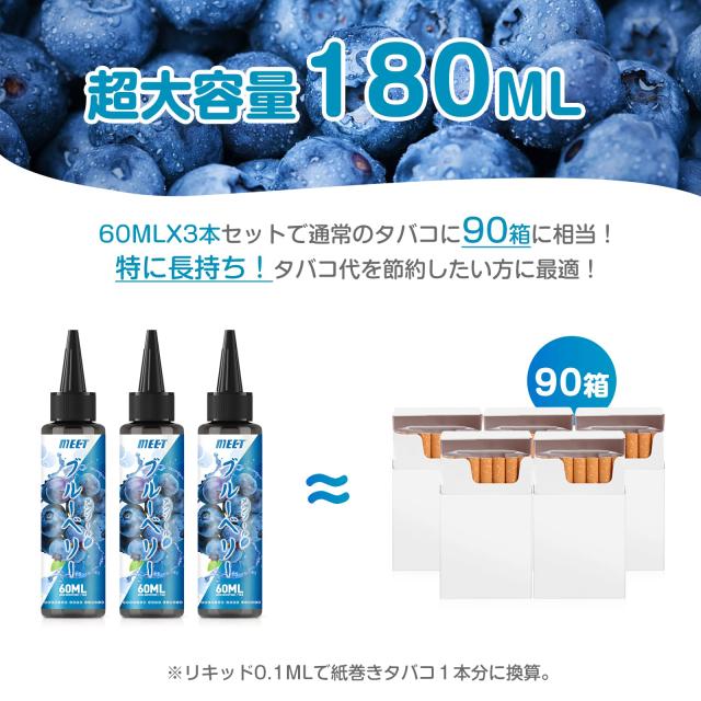 電子タバコ リキッド ブルーベリー メンソール 180ml 大容量 vapeリキッド ニードルボルト付き ニコチンなし タールなし ベイプ 爆煙 E-Liquid MEET