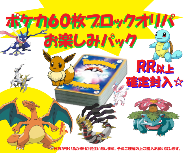 ポケモンカード 60枚 つめあわせセット ブロックオリパ オリパ 福袋 お楽しみパック RR以上カード確定封入 中古品