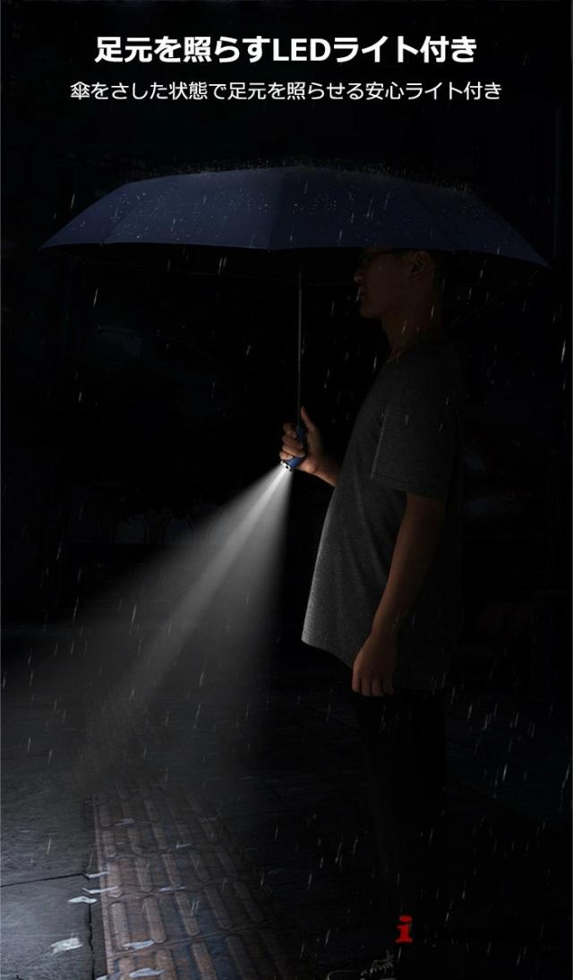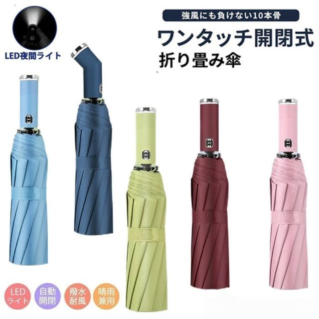 折りたたみ傘 LEDラート付き LED懐中電灯 10本骨 雨傘 日傘 晴雨兼用 男女兼用 折り畳み傘 傘 ワンタッチ 自動開閉 撥水加工 無地 梅雨対策 頑丈 メンズ レディース シンプル ビジネス 紳士用 通勤 通学 耐風 撥水 LED搭載 台風対応 防災