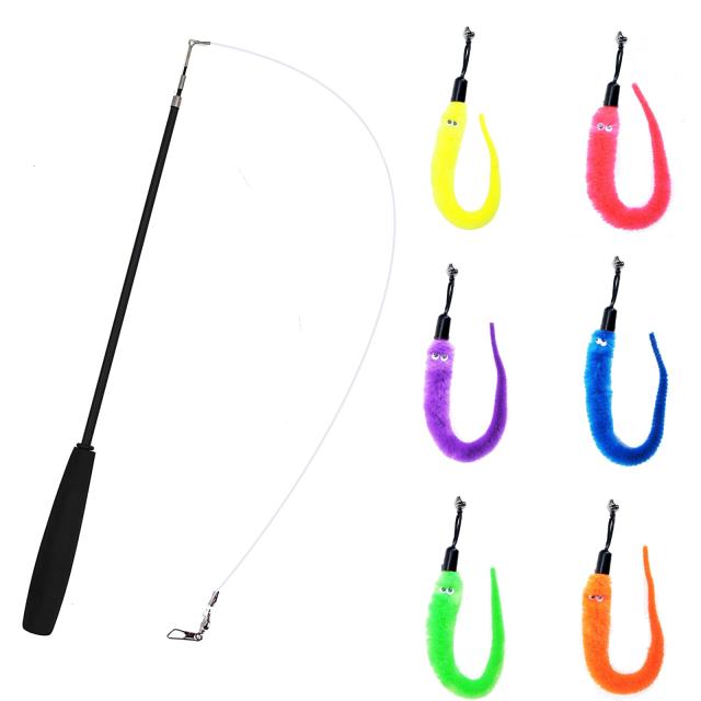 【7個セット】7個WanFengXue猫おもちゃセット。(毛虫 6種、伸縮竿 1本)