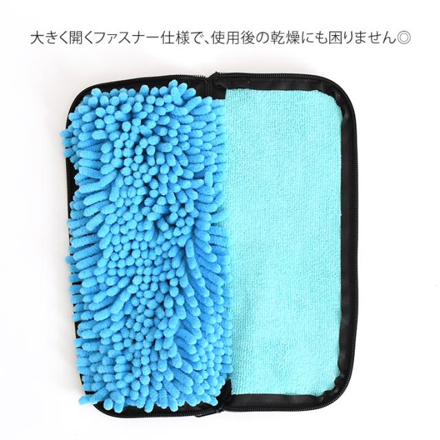大きく開くファスナー仕様で、使用後の乾燥にも困りません◎