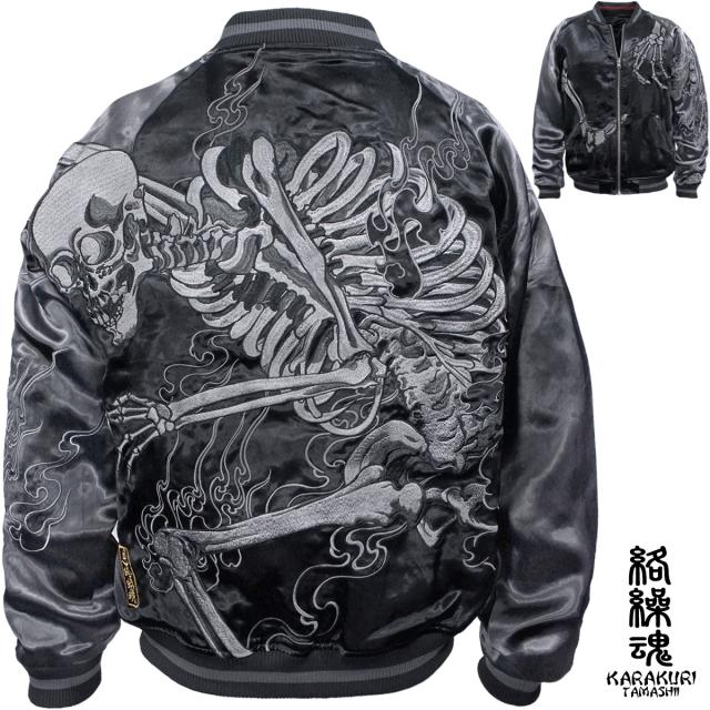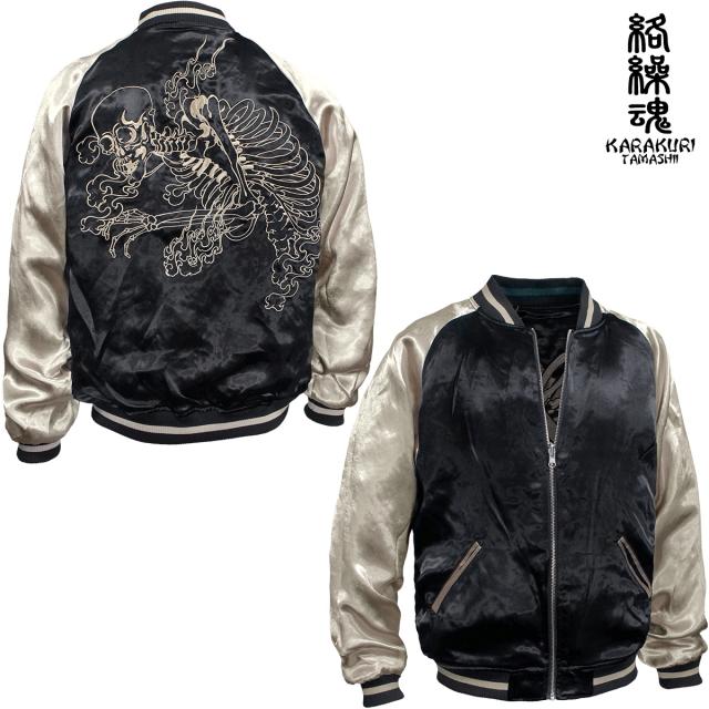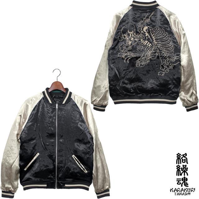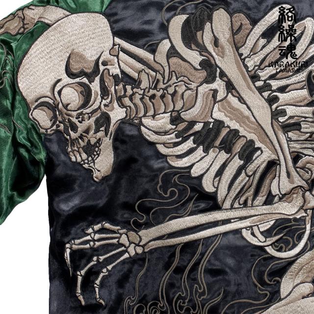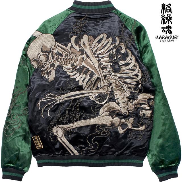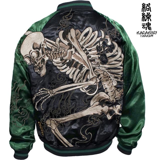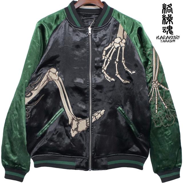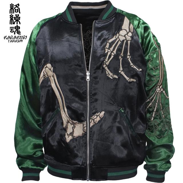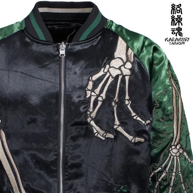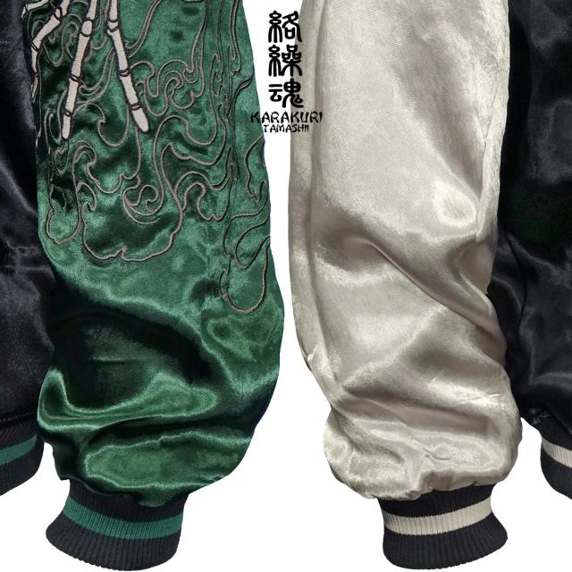 からくり魂 絡繰魂 粋 スカジャン 横須賀ジャンパー ブランド ガシャドクロ 和柄 メンズ レディース 刺繍(グリーン緑) 252025