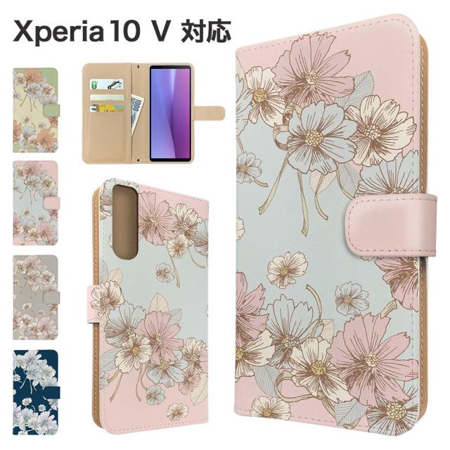 Xperia 10 V ケース 手帳型 SOG11 SO-52D A302SO XQ-DC44 スマホケース カバー 花柄 フラワー スマホカバー 携帯カバー エクスペリア10マーク5 ケース