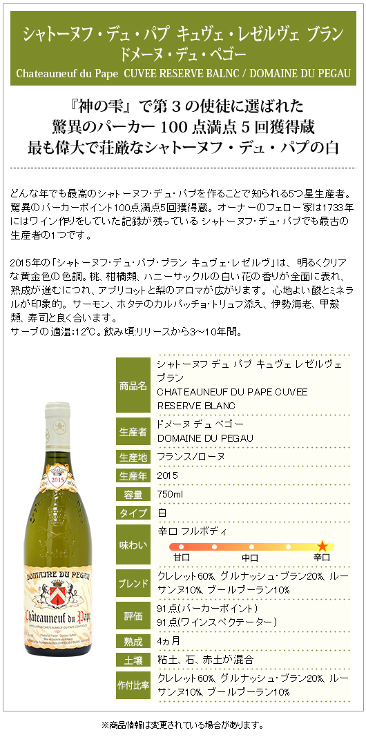2023 シャトーヌフ デュ パプ キュヴェ レゼルヴェ ブラン 750ml ドメーヌ デュ ペゴー ローヌ フランス 白ワイン コク辛口 ワイン ^C0PERB23^