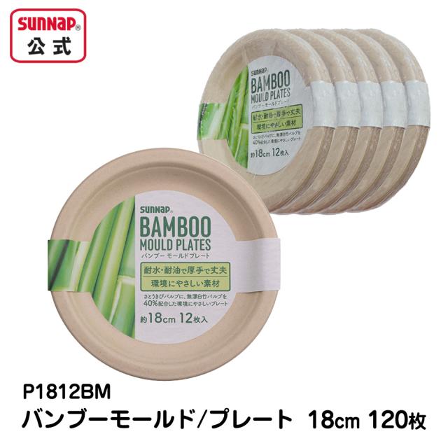 バンブー モールド プレート 18cm 120枚入 紙皿 ペーパープレート バガス 非木材 業務用 さとうきび 竹製 防災グッズ