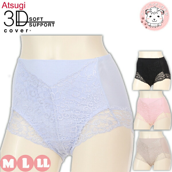 【アウトレット】アツギ スリーディーカバー 綿95% 深履き スタンダードショーツ LL | お腹押さえ バックレース ショーツ 80890AS ATSUGI 3D COVER