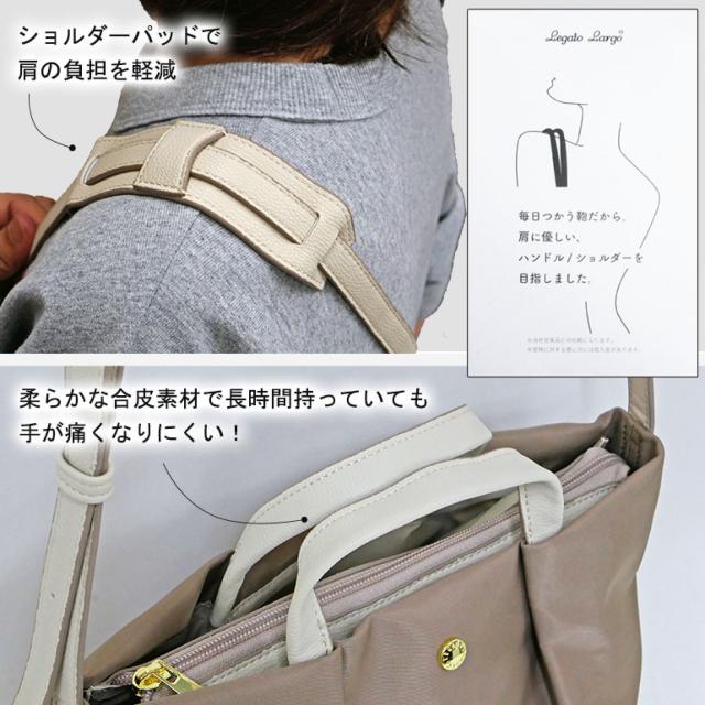 レガートラルゴ 2WAY ミニ ショルダーバッグ トート ハンドバッグ 肩楽 通勤 おでかけ デイリー 旅行 行楽 肩パッド 肩の負担を軽減 撥水 軽い ナイロン ソフト合皮 光沢感 高見え 学生 主婦 ミセス OL ママ レディース ゴールド金具 LHL0005
