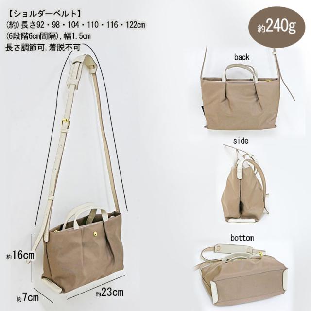 ショルダーやトート部分には柔らかいフェイクレザーを使用し、