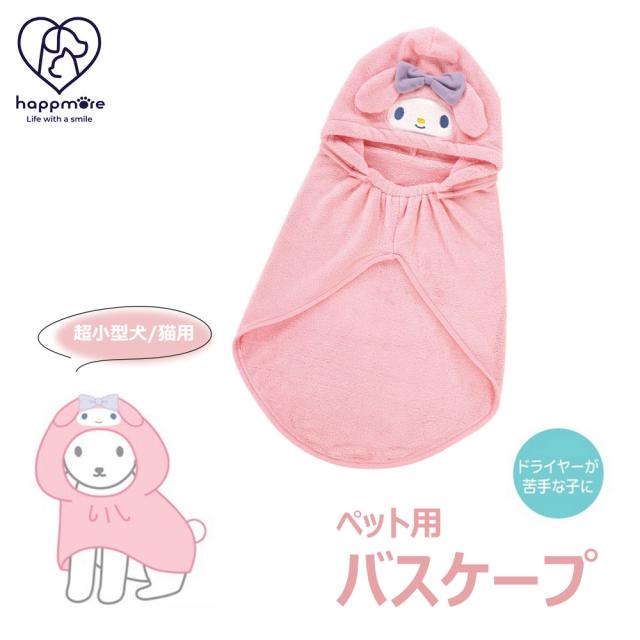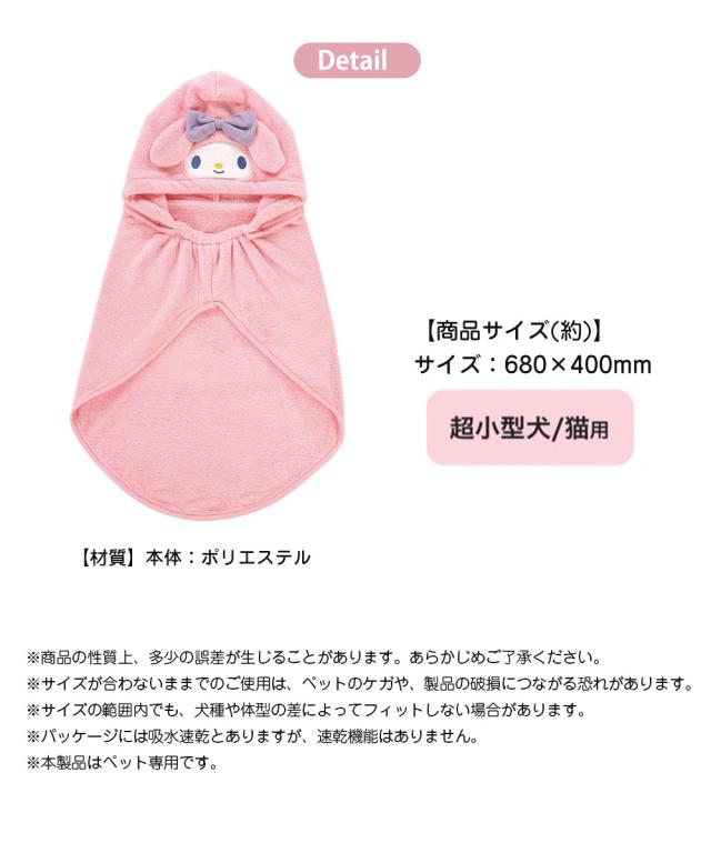 ペット用 バスローブ タオル 吸水 超小型犬 猫 犬 シャンプー 着るバスタオル 猫用 ネコ たおる バスタオル 可愛い お風呂 散歩 水分吸収 冷え対策 バスケープ サンリオ キャラクター マイメロディ ピンク PBCP1