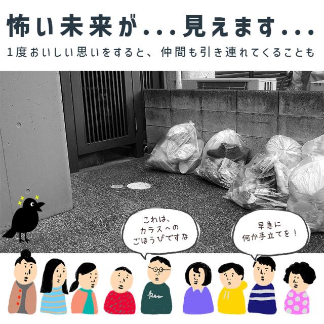 カラスのゴミ荒らしの被害は悲惨、、ゴミをこれでもかとあさって散らかしていきます。
