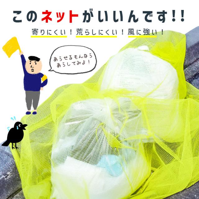 ●重りロープのカラスよけゴミネット●【カラス被害に】カラスのゴミ荒らしの被害は悲惨、、ゴミをこれでもかとあさって散らかしていきます。一回のみならず、記憶して何度もやってきて、ついには仲間も引き連れて荒らし放題、、そんな被害にあわないように、風に強くしっかりくちばしからも守る、この重りロープ付きのネットで対策を!きっと効果に満足していただけます。【重りロープ】ネットをぐるっと囲むように入っているロープは、鉛を含んでいて、重みがあります。風にも強く、荒らしもしにくい丈夫で安心の素材です。【環境に優しい素材】環境に優しく、無臭、無毒、人体に無害な新しいHDPE素材を採用。引っ張り強度にも優れています。網目は4mmと細かく、くちばしからも守ります。