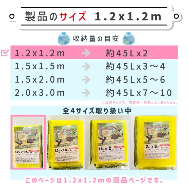 カラスよけネット ゴミネット 1.2x1.2m カラス被害 45Lゴミ袋 ゴミ置き場 網目4mm ゴミネット カラス対策 風に強い 簡単設置 おもりロープ ゴミ出し カラス避け 猫 防鳥ネット ゴミ網 自治体 ご家庭 組合