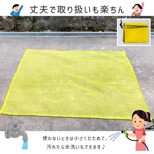 ネットをぐるっと囲むように入っているロープは、鉛を含んでいて、重みがあります。風にも強く、荒らしもしにくい丈夫で安心の素材です。
