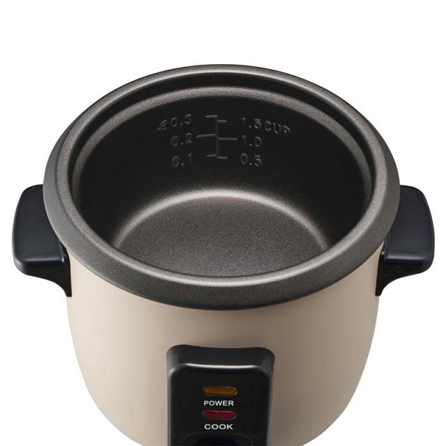 最小炊飯容量0.5合で約15分、最大炊飯容量1.5合で約25分でご飯が炊きあがる、コンパクトでシンプルな炊飯器。ひとり暮らしには最適なサイズ感です。※水の温度や量によって異なります。