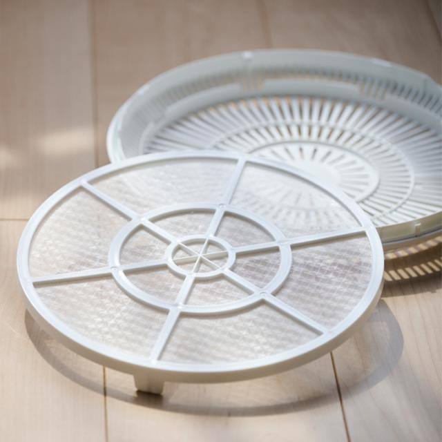 背面にはホコリをキャッチするフィルター付き。羽根の汚れを抑えてお手入れの手間を軽減し、いつでも清潔に保てます。