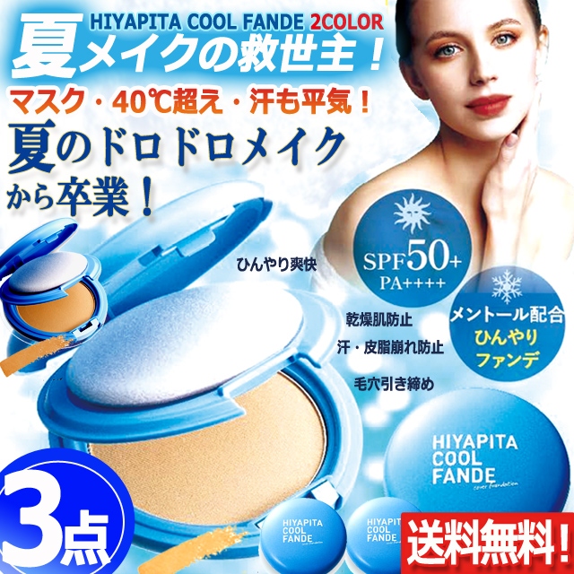 3点 国内最高基準UVカバー冷感ファンデ HIYAPITA ヒヤピタカバーファンデクール 3点 SPF50 メイク 紫外線 ひんやり 化粧崩れ 夏