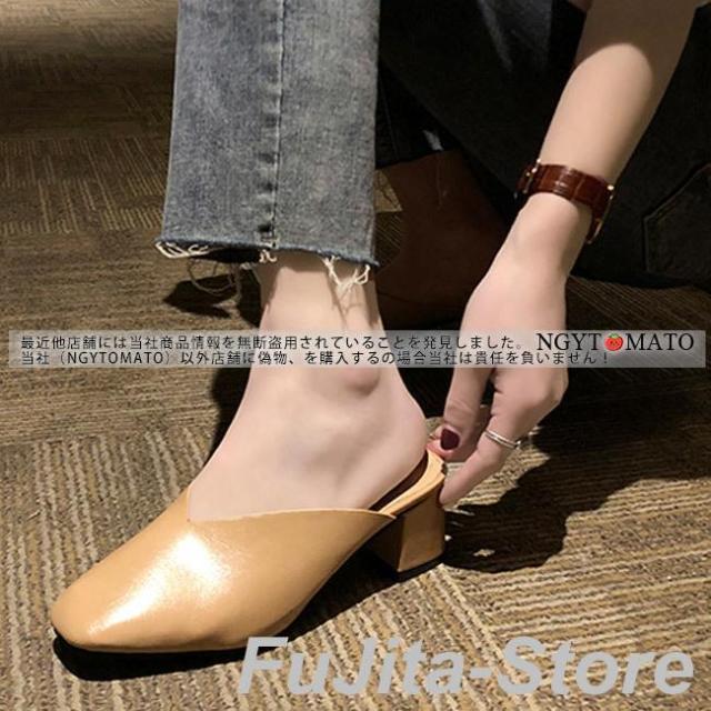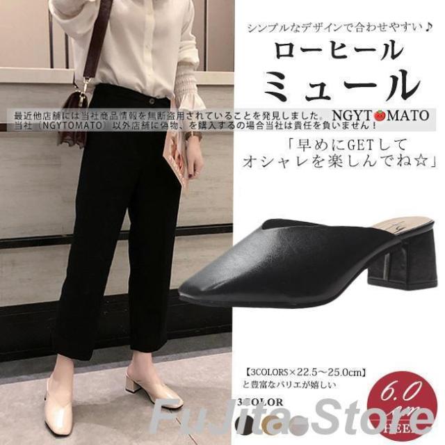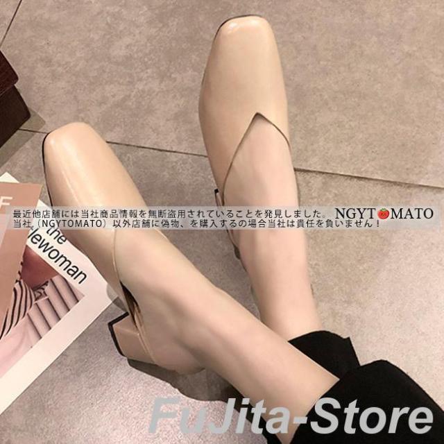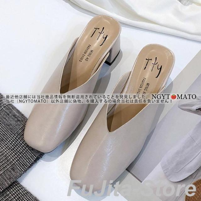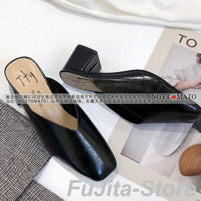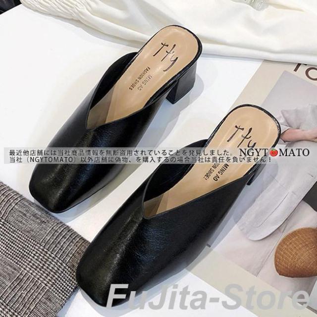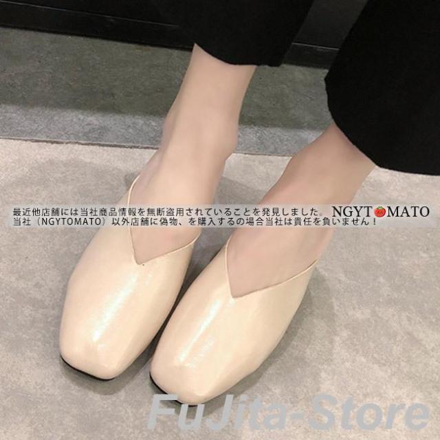 ミュールパンプス レディース ミュールサンダル スクエアトゥ ミュール かかとなし 黒 ローヒール Vカット PU カジュアル 履きやすい 歩きやすい おしゃれ 大人
