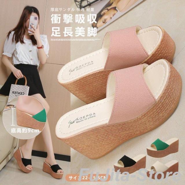 ミュール サンダル ヒール 9cmサンダル レディース 厚底 ウェッジソール オープントゥ ウェッジソール 厚底サンダル ミュール サボ ヒール コンフォート 夏用