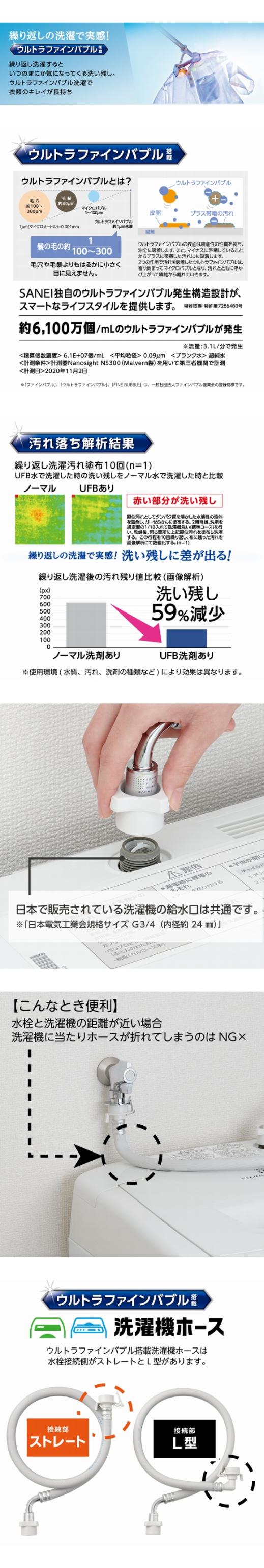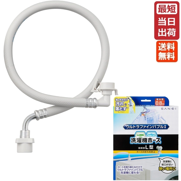 SANEI FB自動洗濯機給水ホース L型 PT1706-1X-0.8 三栄水栓 ウルトラファインバブル発生装置内蔵 即納 送料無料 正規品 純正 洗濯機用 ウルトラファインバブル マイクロバブル 洗濯機用ホース 簡単取り付け 工事不要 汚れ落ちアップ 防臭効果アップ 洗濯機用品
