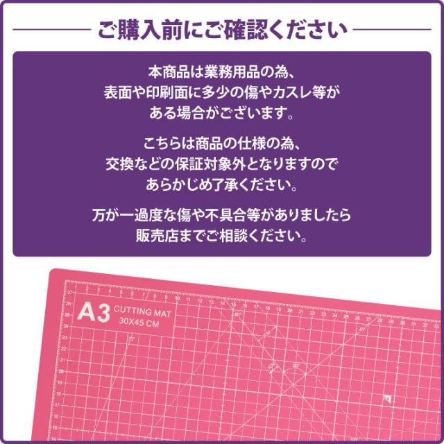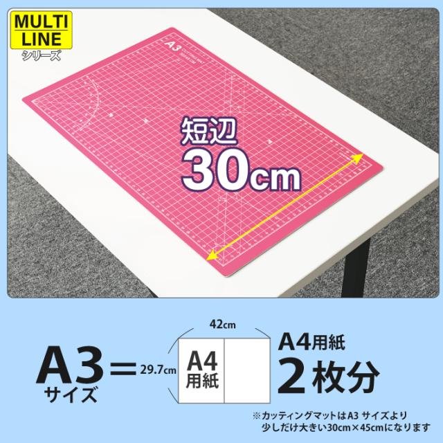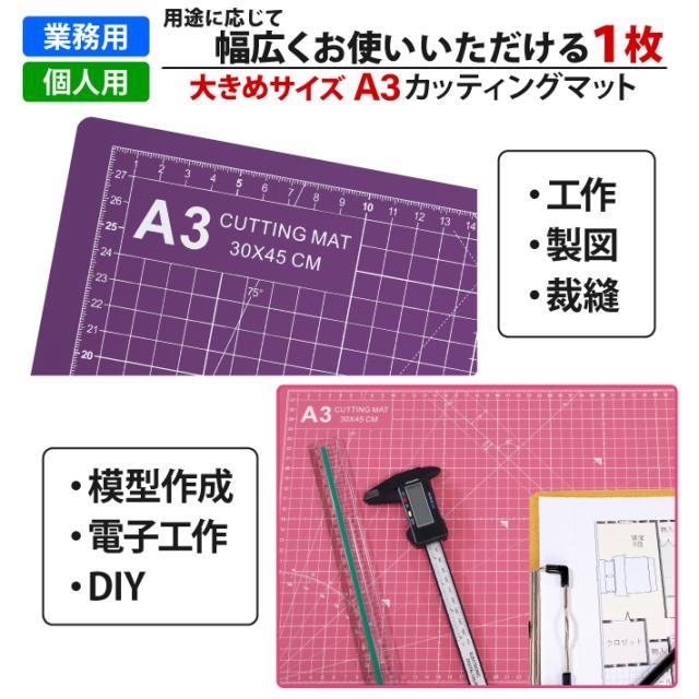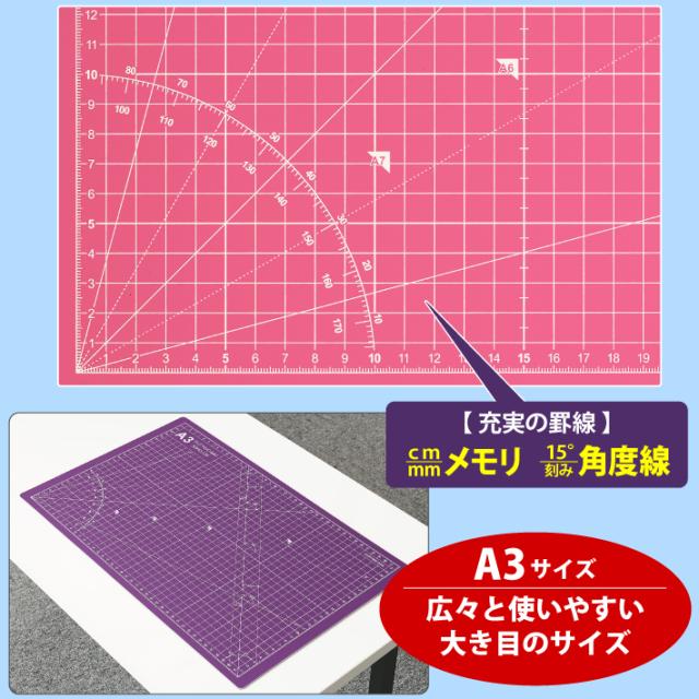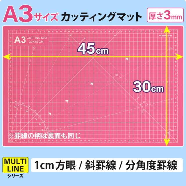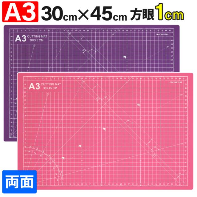 カッティングマット A3 サイズ 30cm x 45cm x 3mm 【1cm方眼】特大 両面メモリ 業務用 工作 カッターマット デスクマット 両面 両面目盛り 切り出し 造形 裁縫 型紙 作業台 方眼 プラモデル 300 450 300mm 450mm 3mm 0.3m 0.45m 【ピンク / 紫】(MULTI LINEシリーズ)