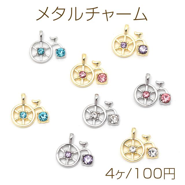 メタルチャーム 合金製 自転車 サイクリング 乗り物 ガラスストーン付き メタルパーツ 約13×14mm(4ヶ)