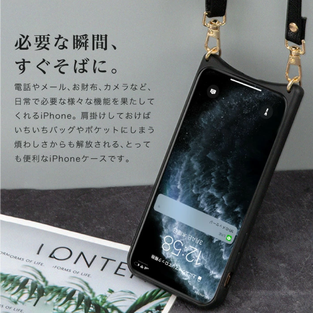 電話やメール、お財布、カメラなど、日常で必要な様々な機能を果たしてくれるiPhone。 肩掛けしておけばいちいちバッグやポケットにしまう煩わしさからも解放される、とっても便利なiPhoneケースです。