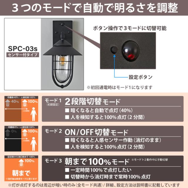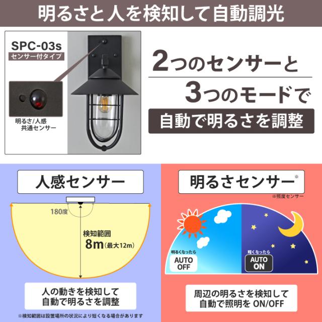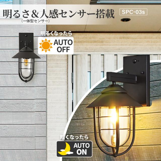 【人感センサー】玄関灯 ポーチライト 防雨 外灯 玄関 LED 照明 門柱灯 庭用 ブラケットライト 明るさセンサー同時搭載 おしゃれ PSEマーク取得 SPC-03S