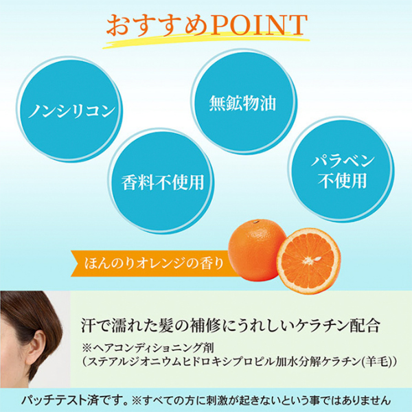汗をかいてベタついた頭皮や髪に皮脂吸着パウダーをなじませるだけでサラサラに!細かな皮脂吸着パウダーが余分な皮脂を吸着し、汗で蒸れた頭皮やベタついた髪をさらりとした手触りに。やさしいオレンジの香りで汗をかいた後の嫌なニオイを抑えて気分もリフレッシュ。流れ落ちた汗でベタついた生え際や襟足もスッキリ快適!汗で濡れた髪のダメージ補修に嬉しいケラチンを配合しています。【内容量】18g【使用目安(約)】0.2g/1回【ブランド】アリル【区分】日本製・化粧品【メーカー】上西産業株式会社