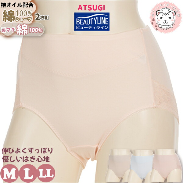 【アウトレット】アツギ ビューティライン 綿100% ウエスト折り返し バックレース フルウエストショーツ 2枚組 LL | ショーツ 8584F2AS ATSUGI BEAUTYLINE