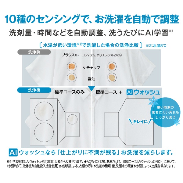 ●Aiウォッシュで洗い時間や洗剤量などを自動で調整