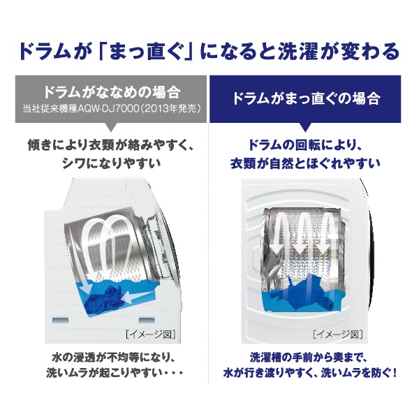 ●ドラムが「まっ直ぐ」になると洗濯が変わる