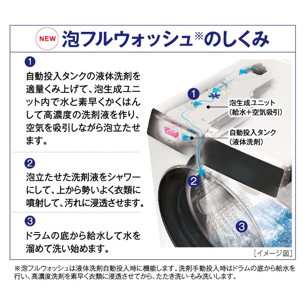 泡のシャワーで洗剤を繊維の奥まで浸透「泡フルウォッシュ」