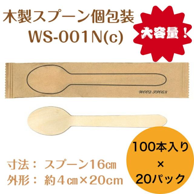 九州紙工 ウッドカトラリー 完封 ウッドスプーン 紙包装 2000本入り(100本×20袋) 木製スプーン 個包装 使い捨て エコ カフェ アウトドア おもてなし
